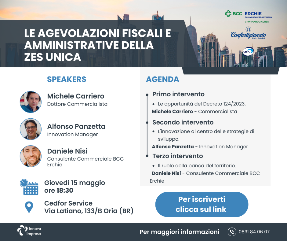 insieme alla Banca BCC di ERCHIE, Cedfor e Innova.Imprese un seminario informativo con: